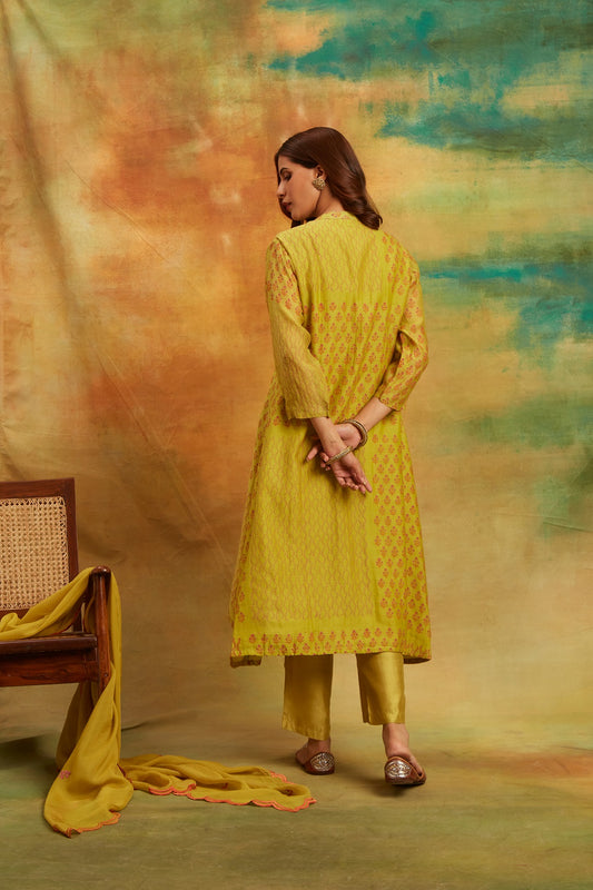 Green Bird Kurta Set Set of 4